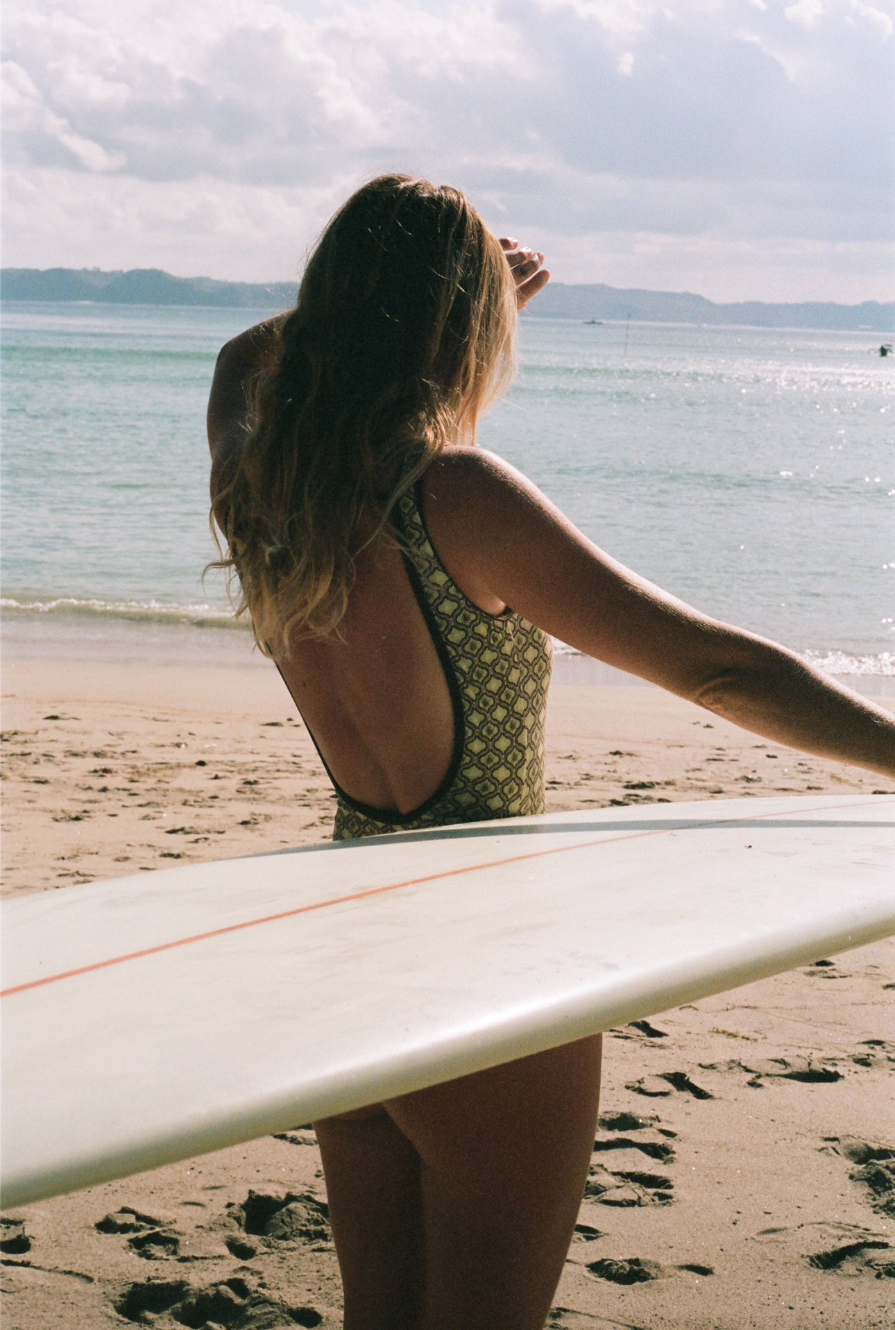 With a nod to vintage design, the Carve features medium–small coverage and a flattering low back. Made practical by a cleverly placed strap between the shoulders, so your suit stays secure no matter how hard you paddle. And when you’re ready to switch things up, just flip it inside out to reveal our signature earthy brown. Two looks, one suit.