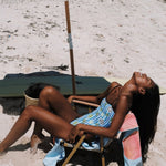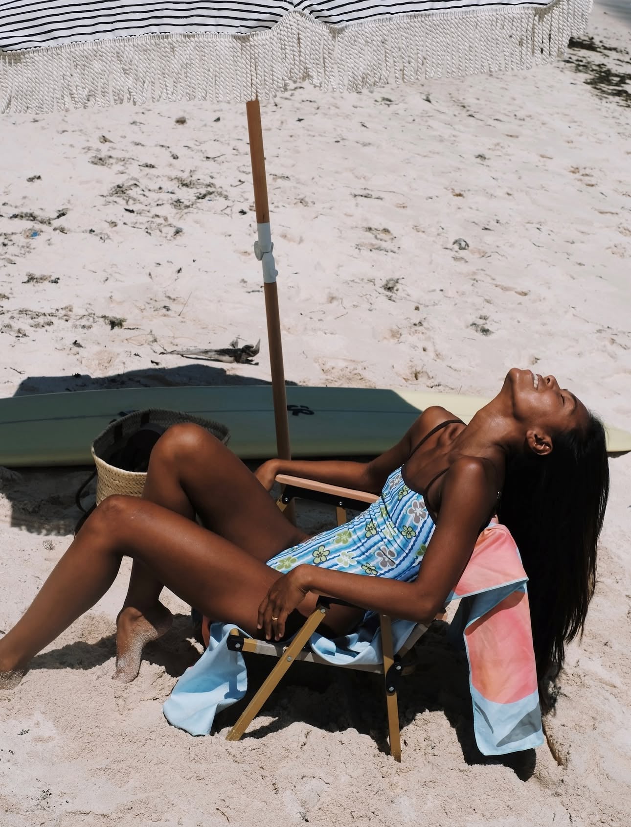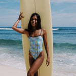 It features a square neckline, adjustable straps, zig zag stitching to keep every secure down there and a medium coverage so it is comfortable to surf in.
