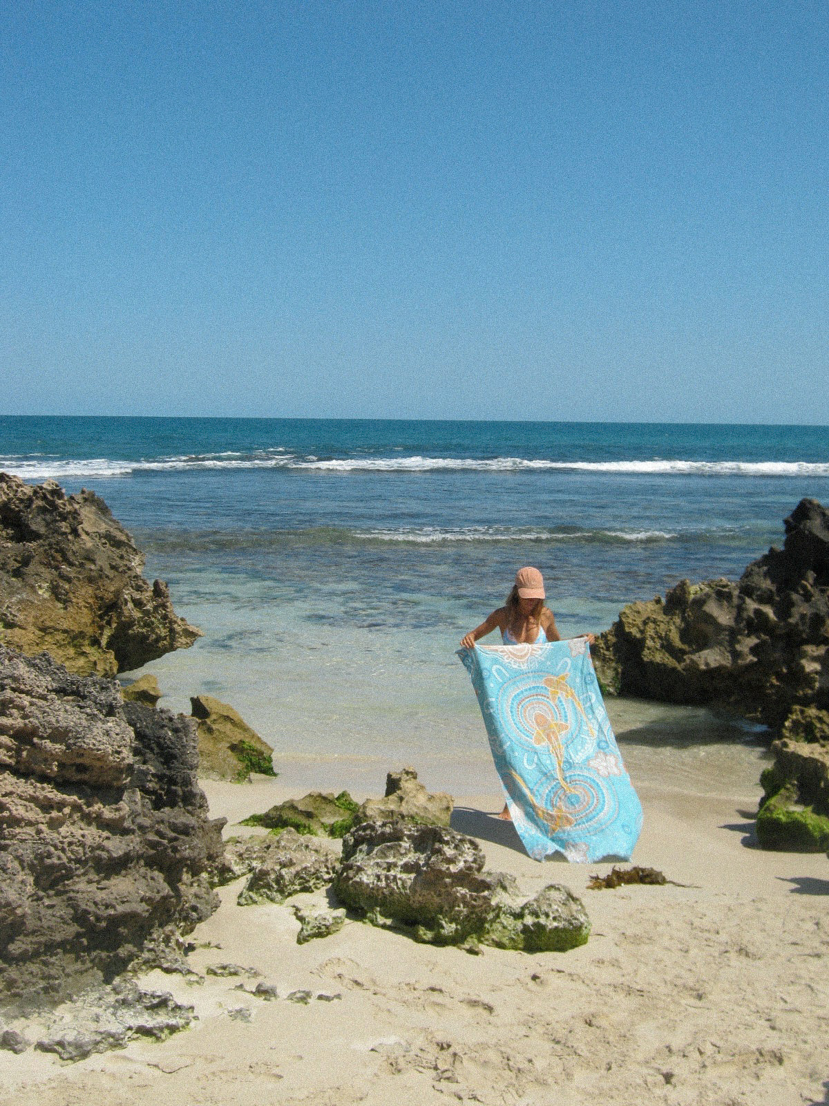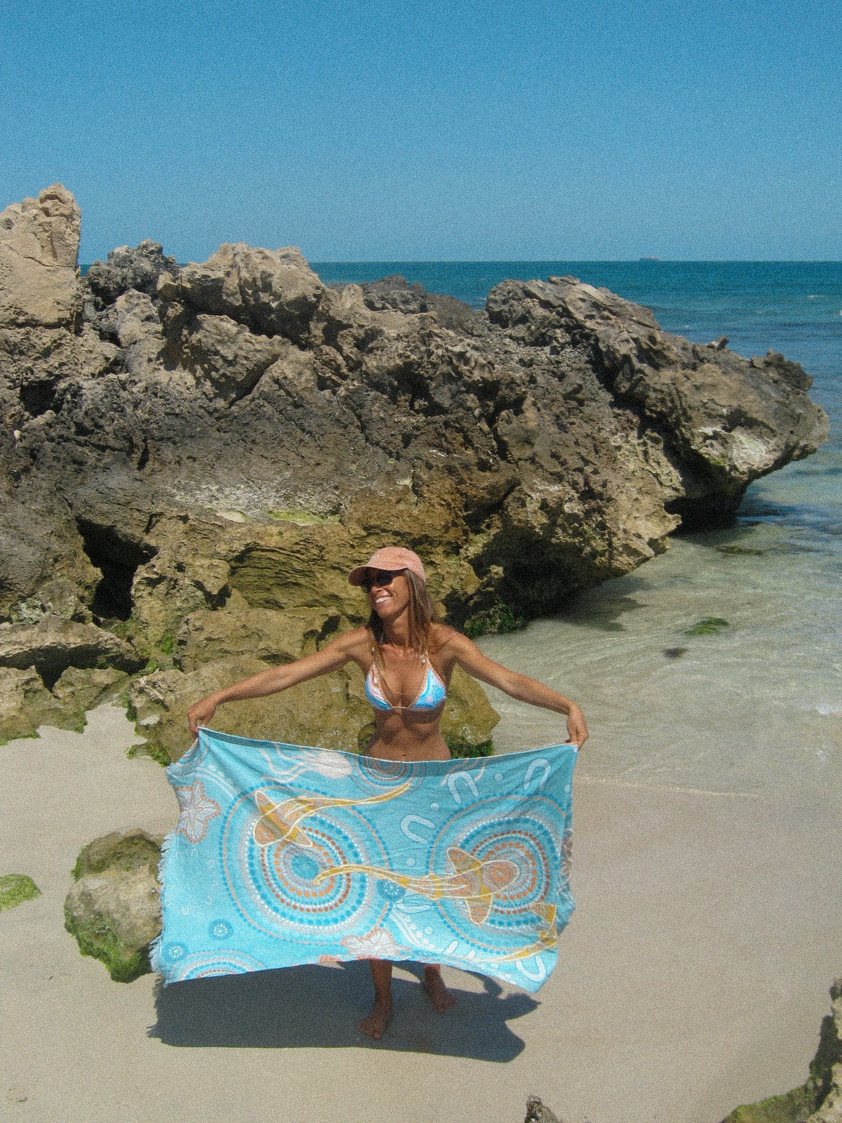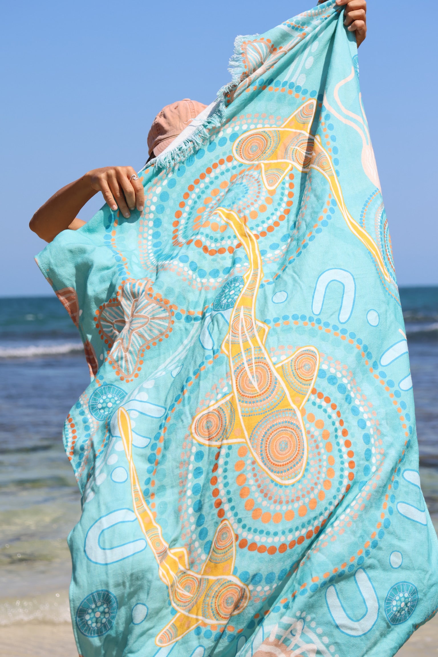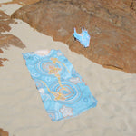 Elevate your beach days with our lightweight towel, crafted from 100% organic cotton for a soft and sustainable touch. Featuring a custom design by Beau Motlop, this towel combines style with eco-friendliness, making it a must-have for your summer adventures.