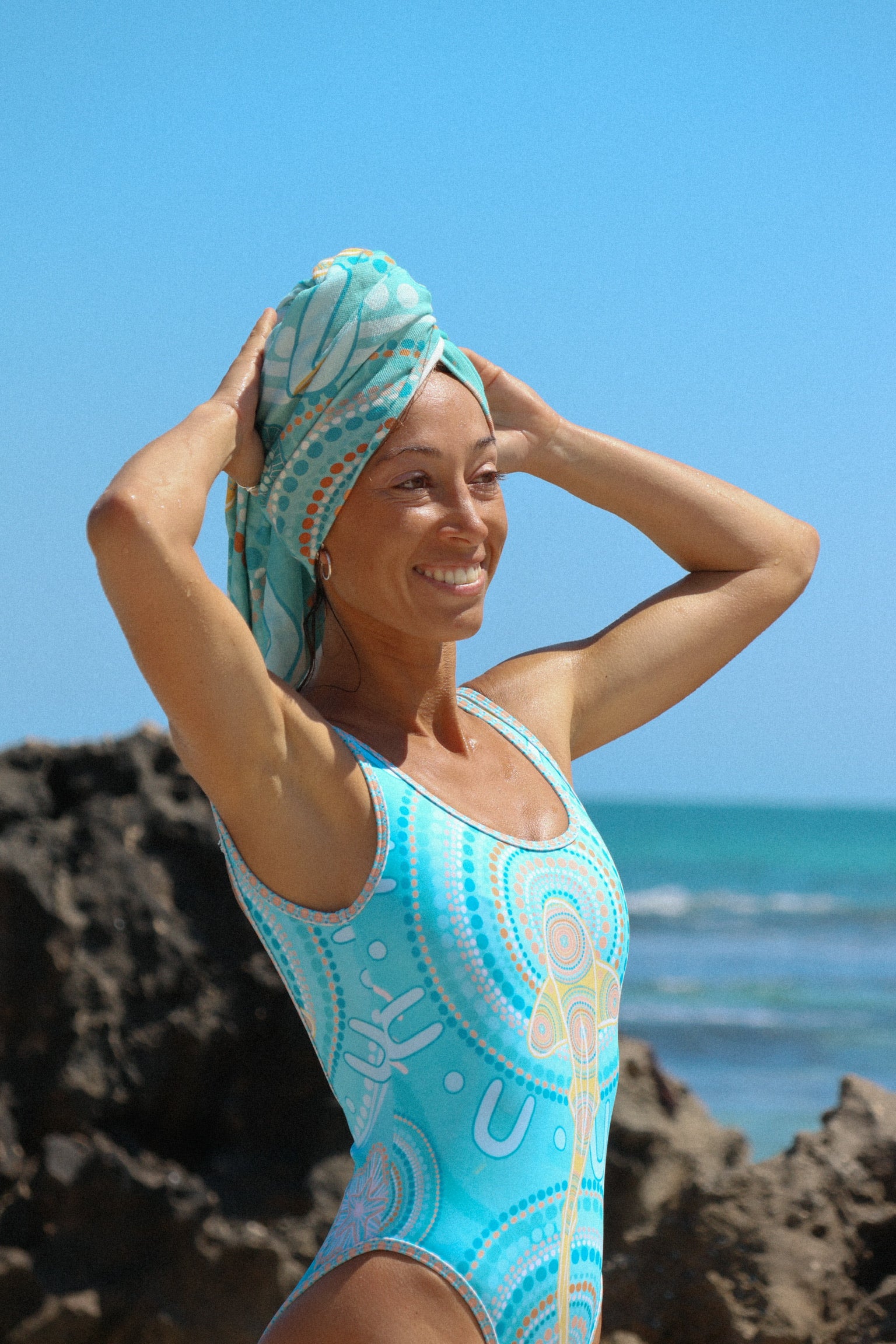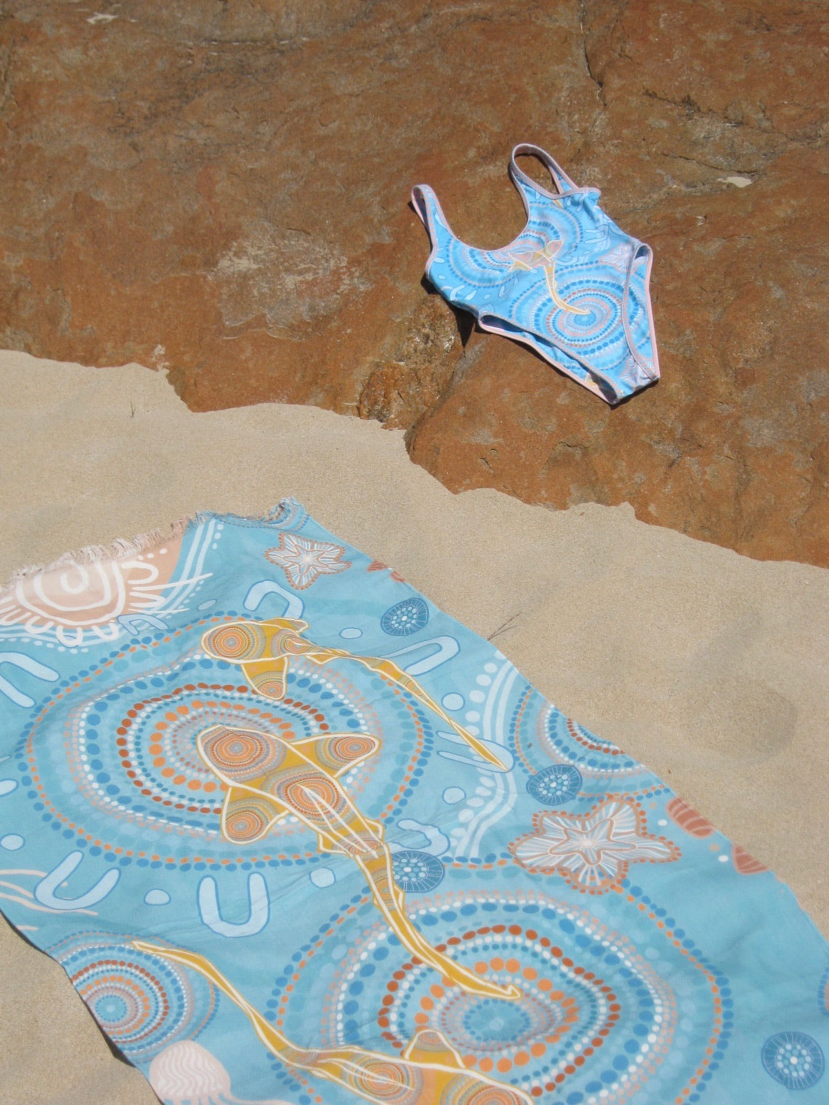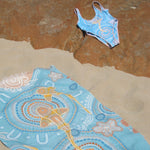 - Custom Artwork: Adorned with a unique print by Beau Motlop, it adds a vibrant flair to your beach or poolside look.
