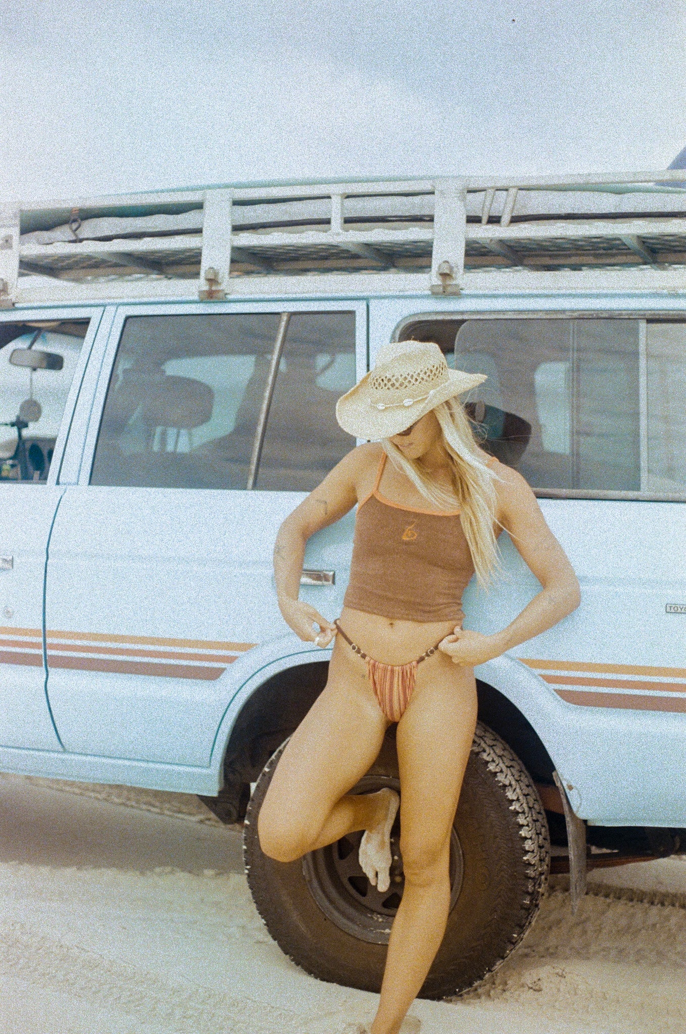 Get ready to soak up the sun with our Ochre Scrunch Bikini Bottoms, designed to give you the ultimate tan while keeping things comfy and stylish. These bottoms feature adjustable sides, allowing you to customize the fit and coverage to your liking - perfect for those who love to mix it up. The scrunch design gives a flattering, cheeky look that enhances your curves and ensures a smooth, sexy fit. Whether you're catching rays or catching waves, these bottoms are made to stay put and let you get your perfect tan.