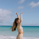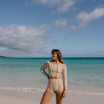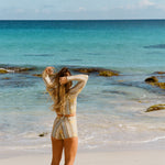 It features a wide neck to show off those sexy collar bones and is a beautiful feminine crop. This would be paired perfectly with our Sandie Surf Suit or even worn with our Sandie shorts!